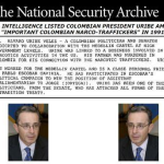{{Washington, D.C., 1 August 2004}} – «Antiguo senador y actual presidente de Colombia, Sr. Álvaro Uribe fue un cercano y amigo personal de Pablo Escobar. Uribe se dedicaba de establecer una colaboración entre el cartel [de la droga] de Medellín y altos cargo del gobierno [colombiano de la época], según fuentes de inteligencia de los EEUU de la agencia DIA [redactados] por oficiales en Colombia».